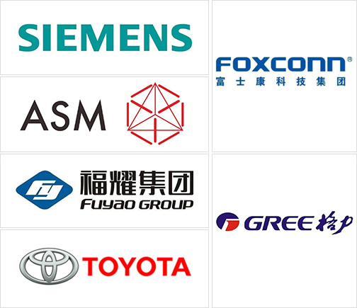 眾多國內(nèi)外知名企業(yè)見證:富士康、格力、美的、赫比、福耀、東風(fēng)、豐田、中國一汽,住友,松下,格蘭仕、西門子、廣東宏遠(yuǎn)等。
